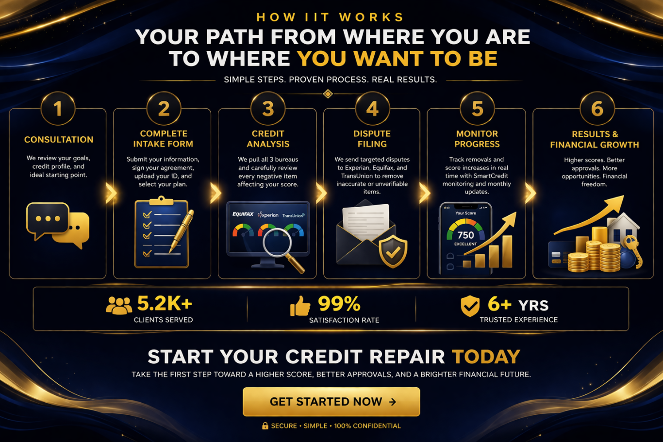 With over a decade of experience in credit repair and financial education, we’ve seen firsthand how inaccurate reporting, collections, and past mistakes can hold good people back from real opportunities. Whether it’s getting approved for a home, a reliable vehicle, or simply peace of mind—your credit matters.